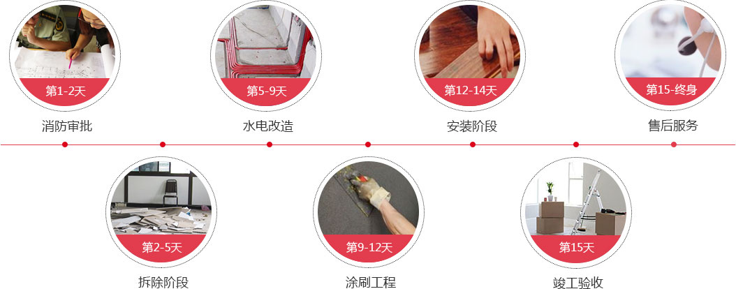 施工過(guò)程統(tǒng)一安排,銜接緊密,從毛坯到入住只需15天標(biāo)準(zhǔn)工期。